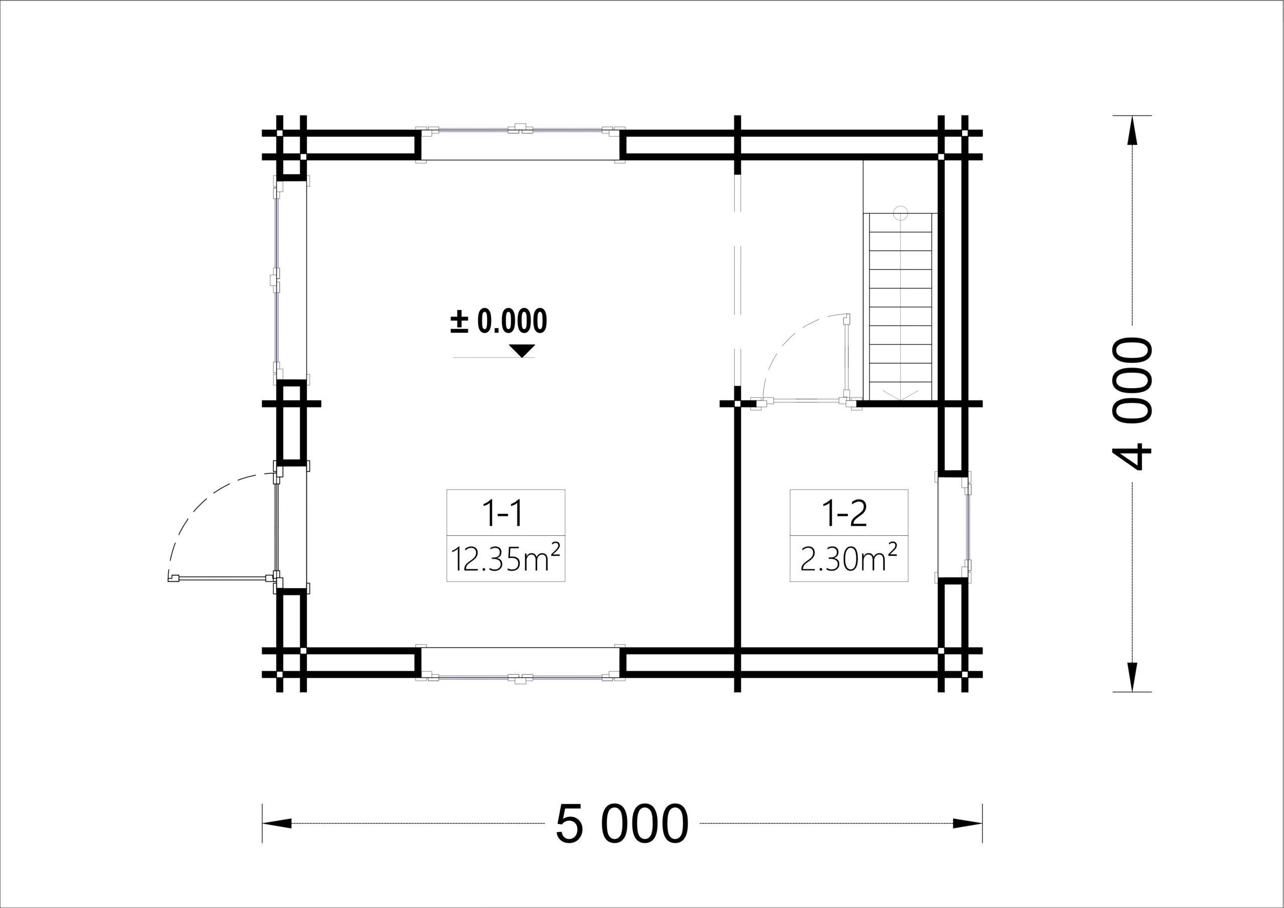 Blockbohlenhaus DORNBIRN (44+44 mm · Extra Isoliert) · 20 m² + 16 m² Schlafboden