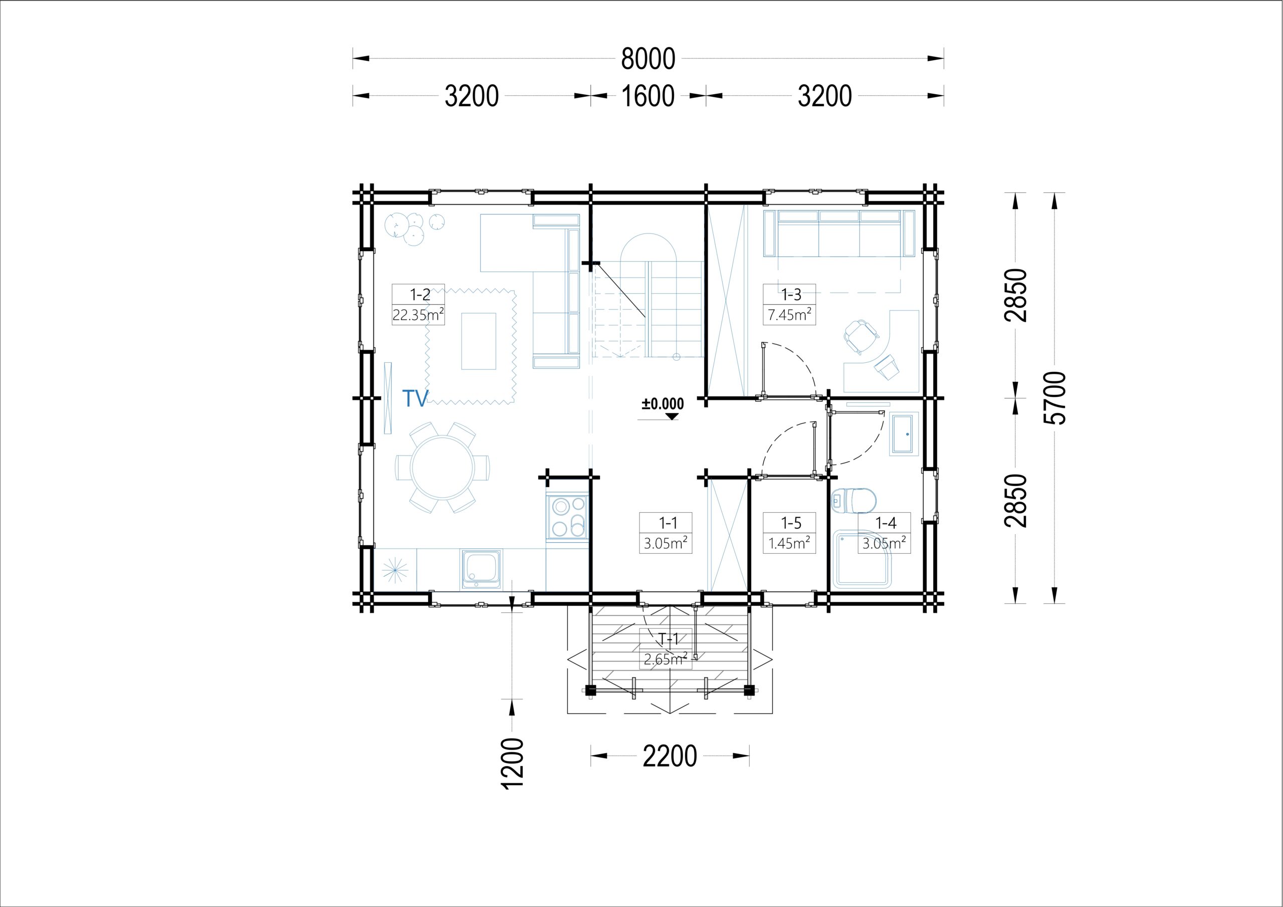 Das Blockbohlenhaus ERNI in der isolierten 44+44-mm-Doppelwandkonstruktion bietet ein flexibles, charmantes und ganzjährig nutzbares Zuhause.