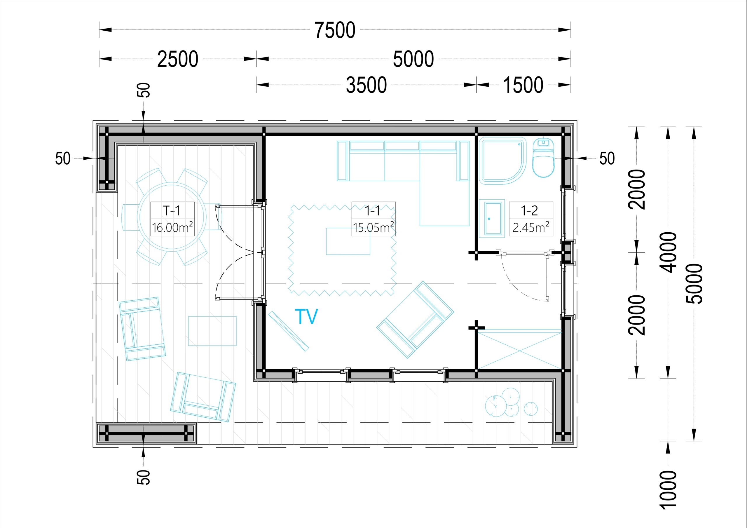 Das Blockbohlenhaus MILAN Modern vereint modernes Design, hochwertige Materialien und eine durchdachte Raumaufteilung. Dank der zusätzlichen Isolierung ist dieses Modell ideal für ganzjährige Nutzung