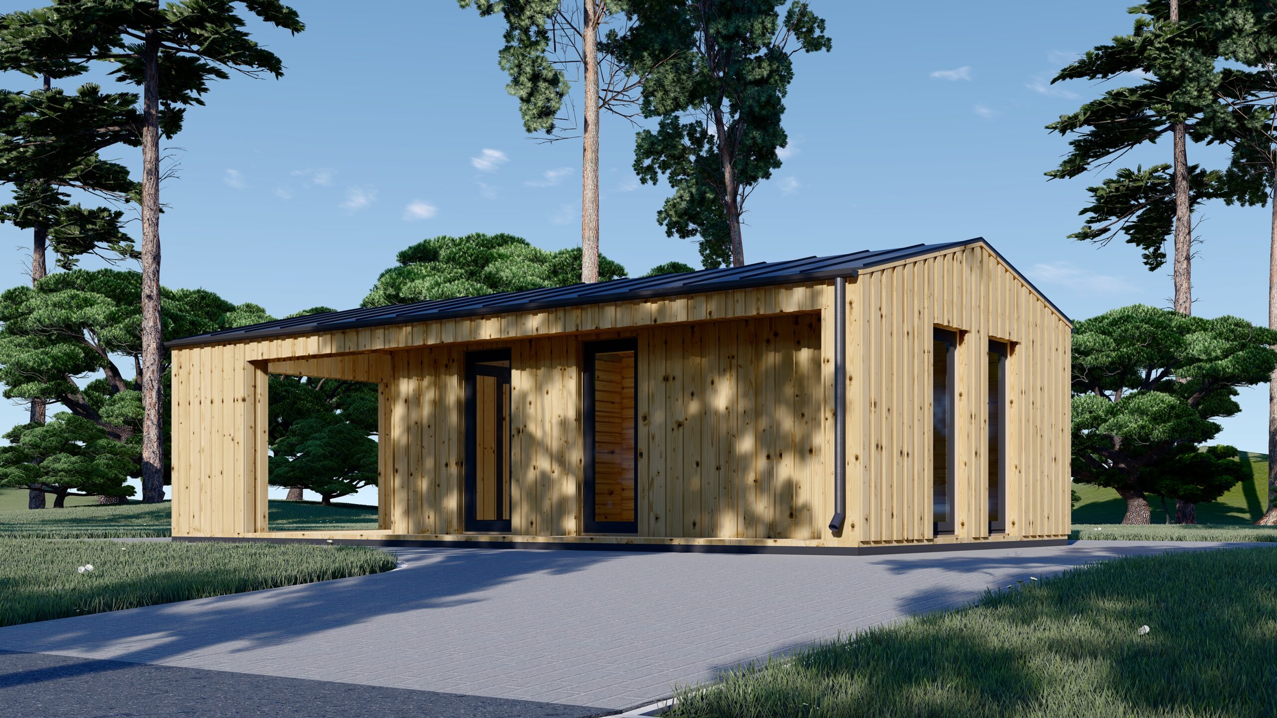 Blockbohlenhaus MILAN Modern (44 mm + Holzverschalung) – 37 m² Isoliert
