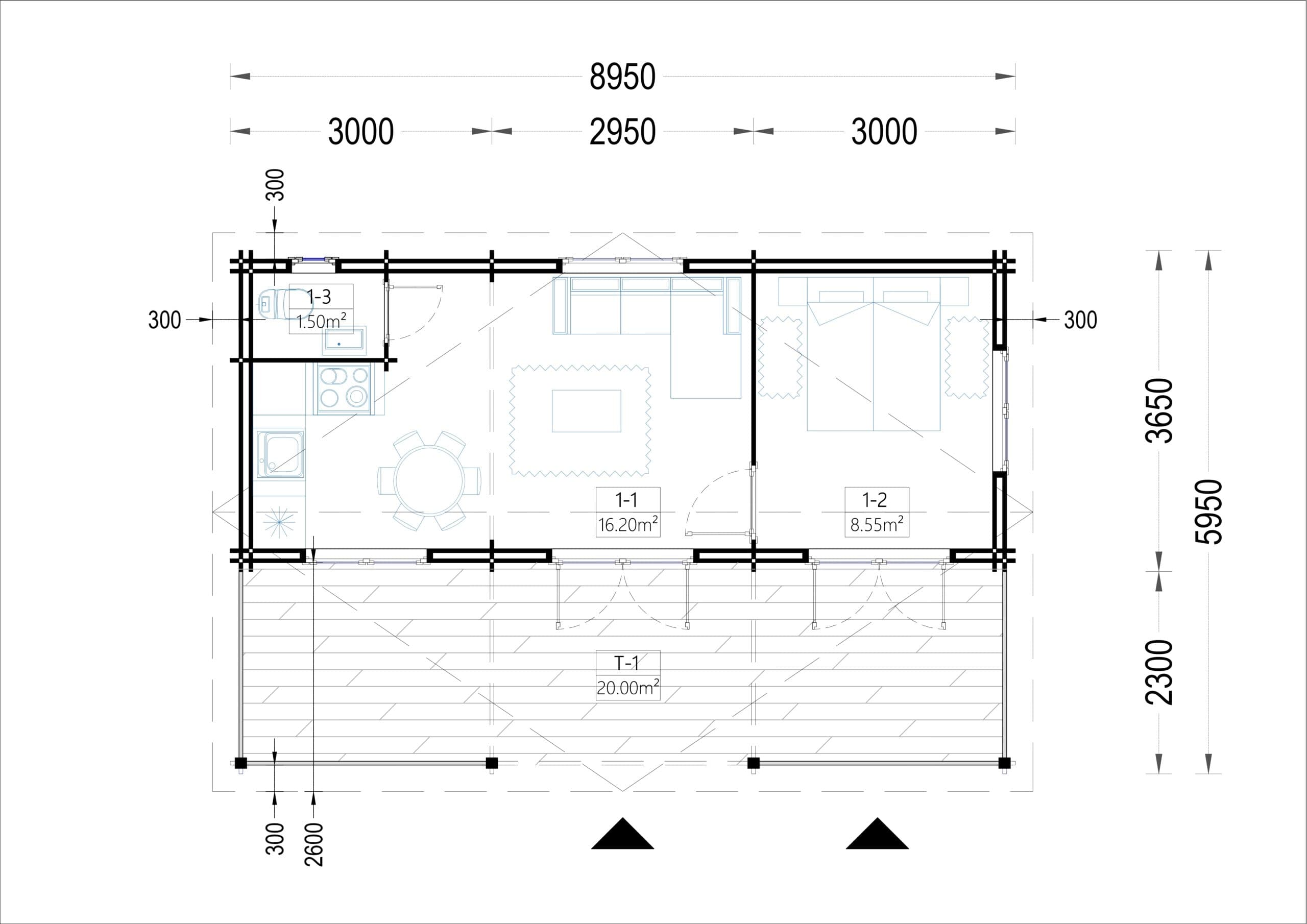 Blockbohlenhaus mit Terrasse LILLI, 32 m² + 20m² Extra Isoliert
