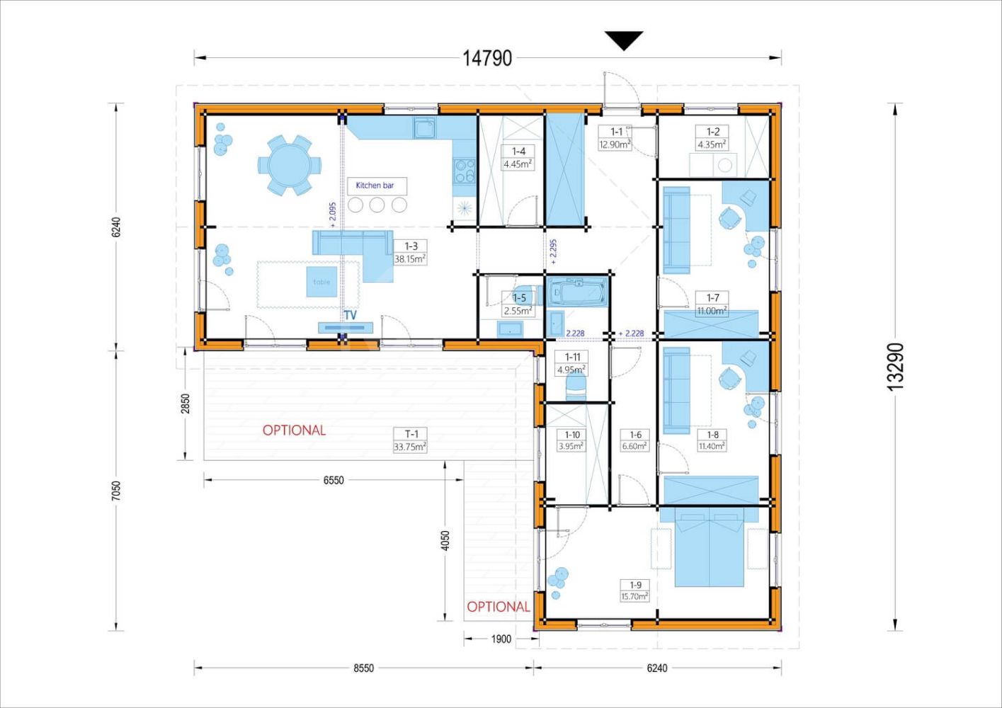Bungalow NEUSIEDL (66 mm + Holzverschalung) – 116 m²