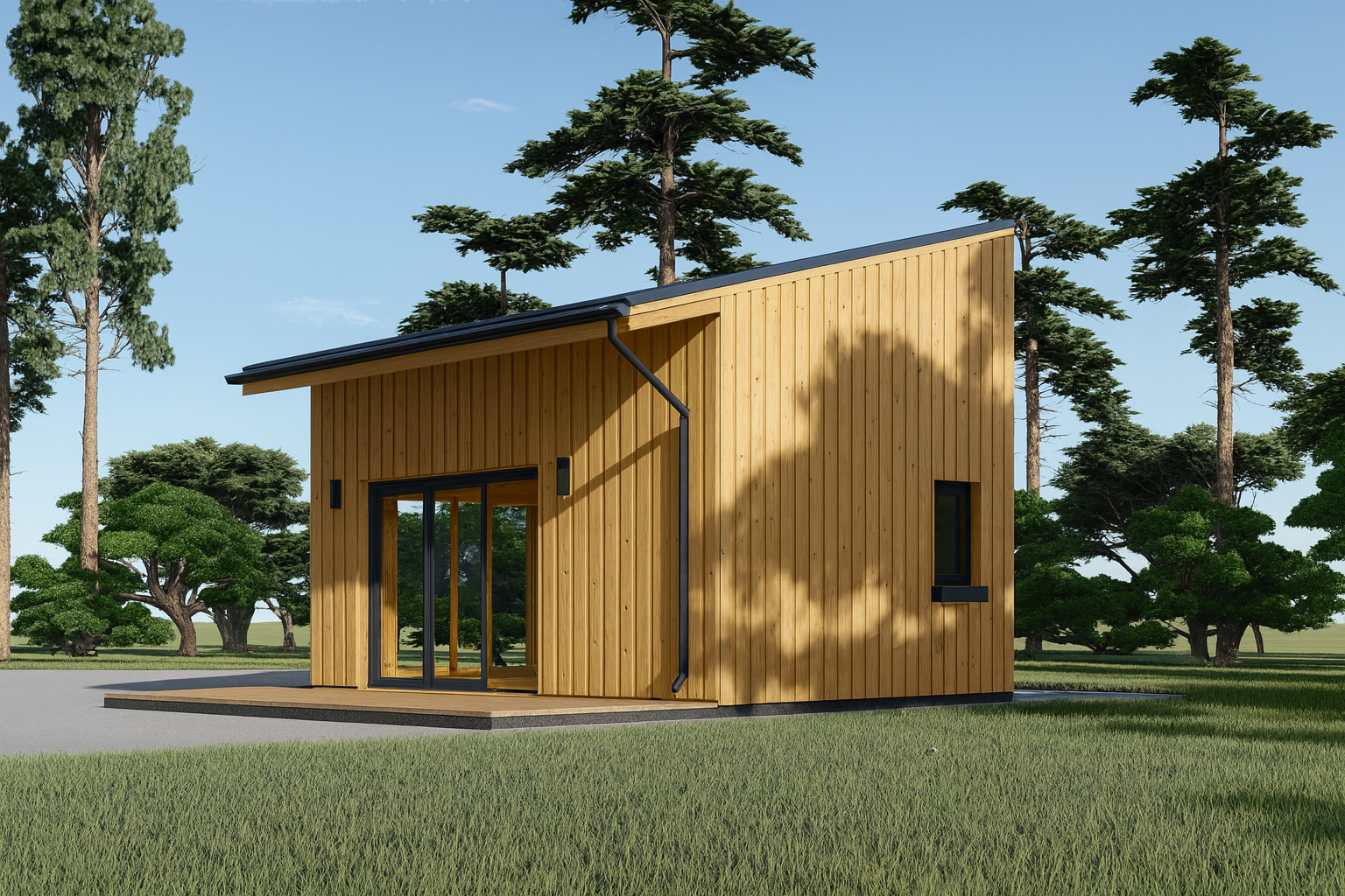 Das Blockbohlenhaus SANDRA verbindet außergewöhnliches Design, moderne Architektur und nachhaltiges Wohnen auf kleinem Raum.