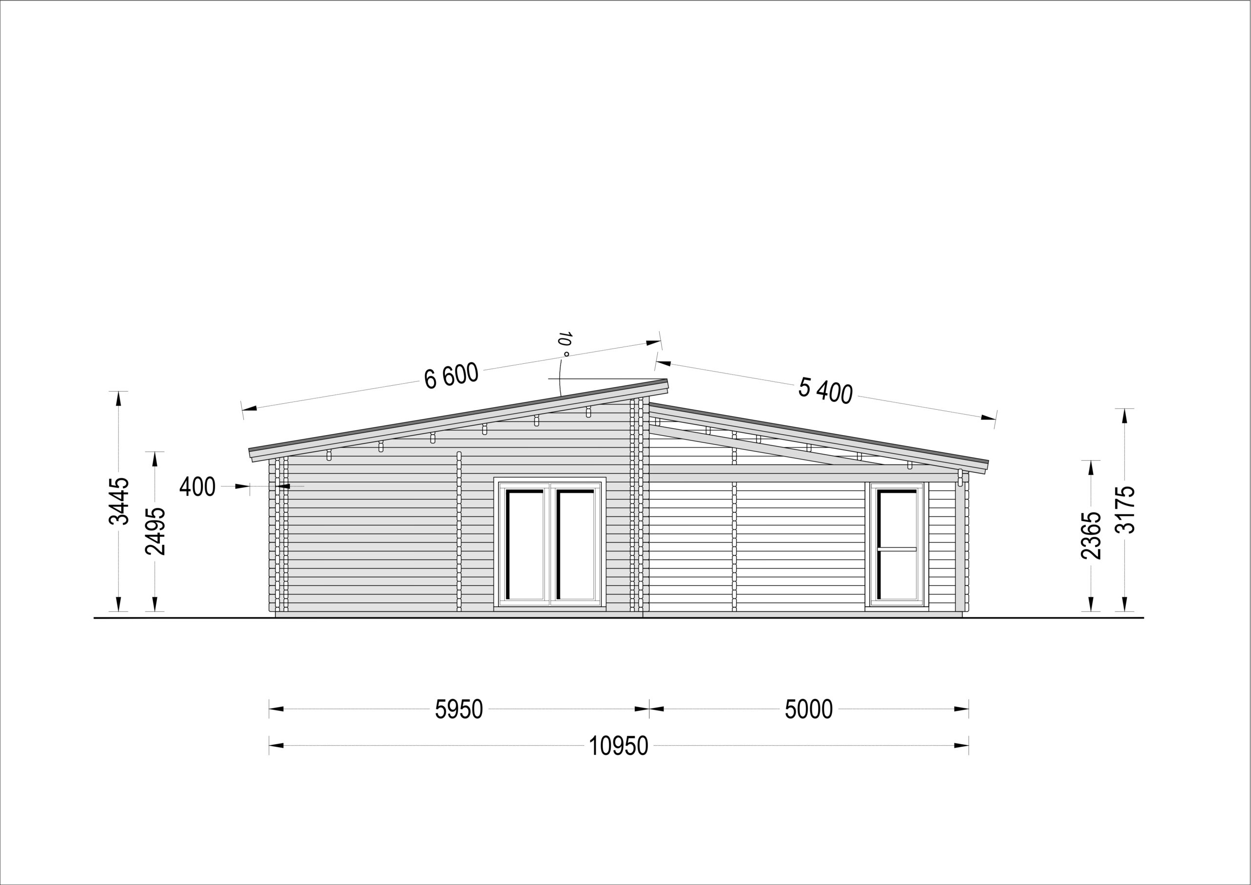 Blockbohlenhaus SEEFELD (44+44 mm) · 105 m² · Extra Isoliert · mit Pultdach