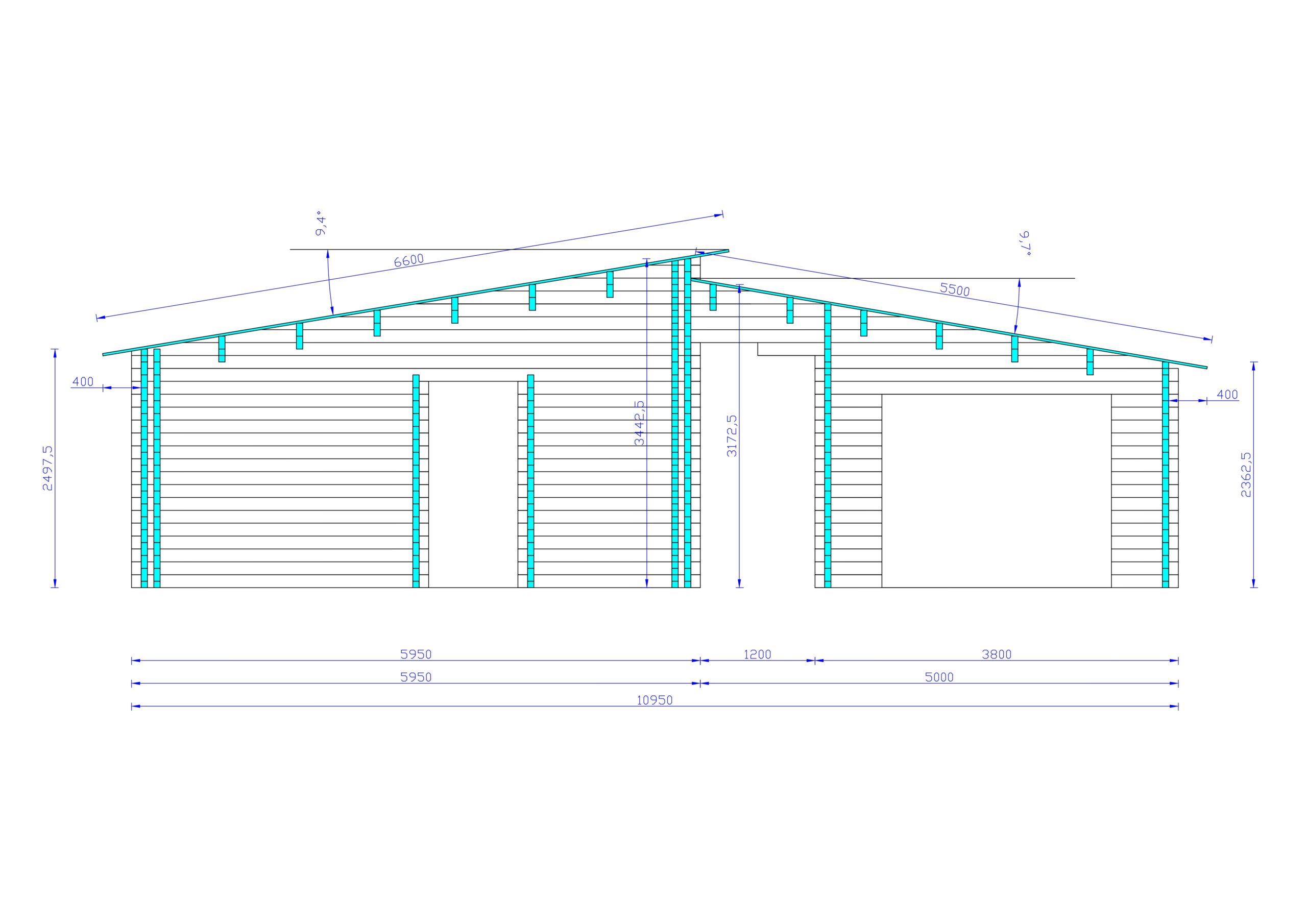 Erhalten Sie ein Dach, das Beständigkeit verspricht! Unsere verstärkte Dachkonstruktion setzt auf robuste Giebel und Dachsparren (45 mm x 135 mm oder 45 mm x 270 mm), um eine dauerhafte Stabilität zu gewährleisten und Ihr Dach vor möglichen Verformungen zu schützen.