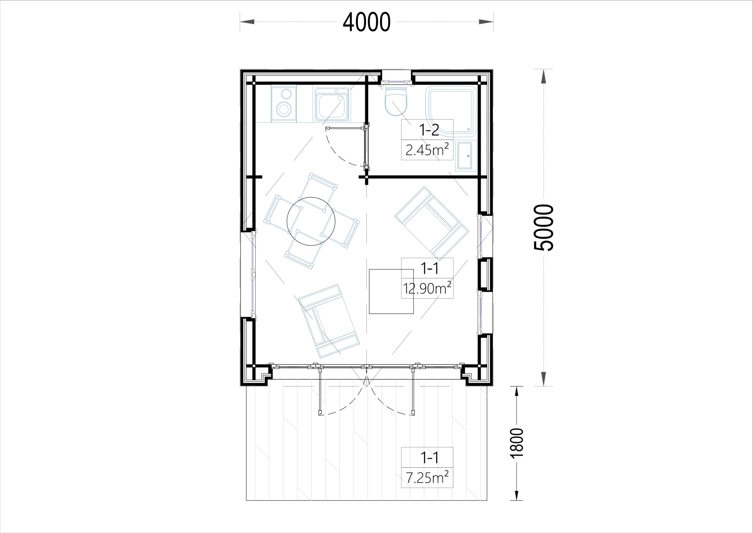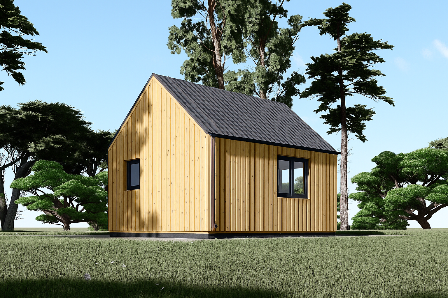 Mit einer Wohnfläche von 20 m² und einer zusätzlichen Terrasse von 7,25 m² bietet dieses Modell den idealen Rückzugsort – perfekt als kompaktes Ferienhaus, Erweiterung des Hauptwohnsitzes oder ganzjährig nutzbares Gartenhaus.