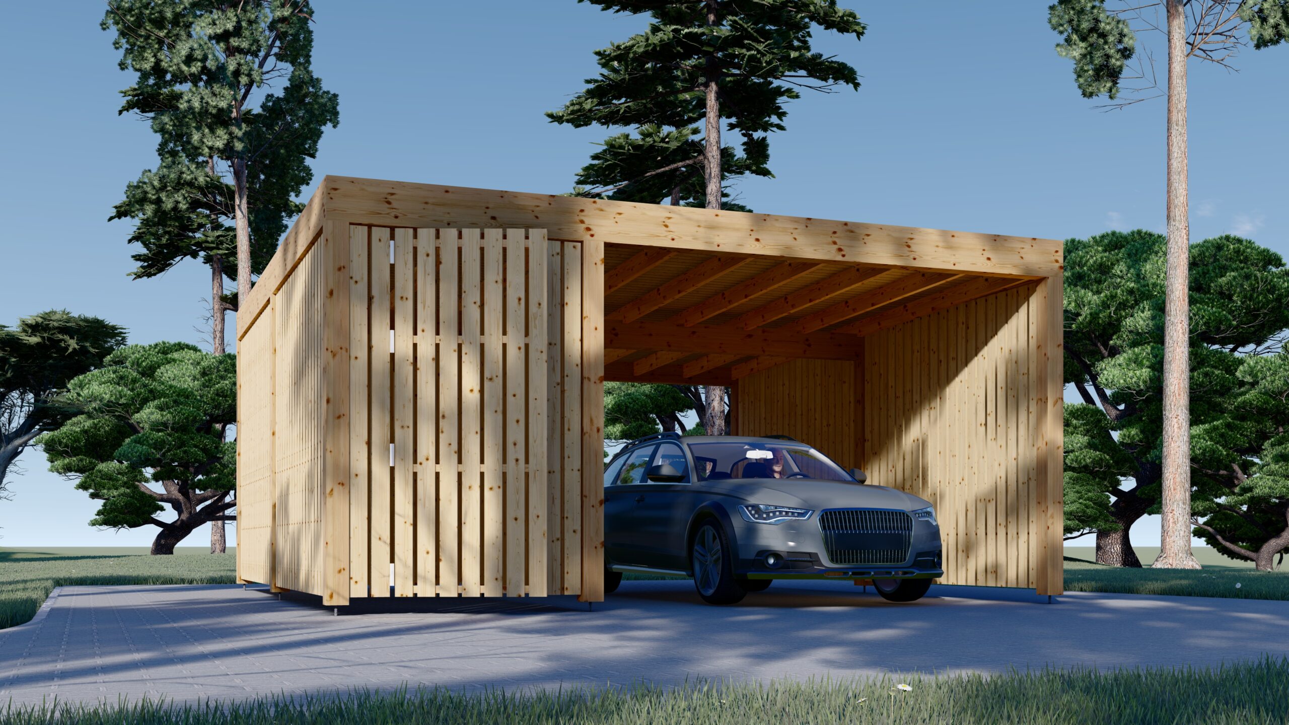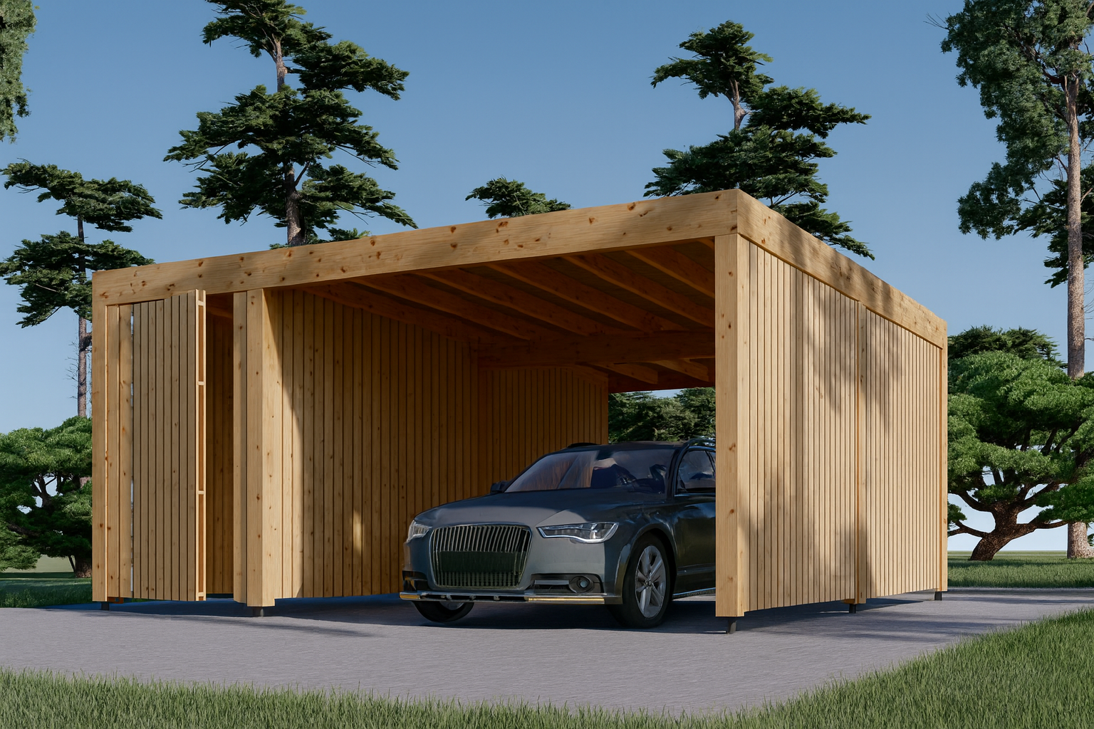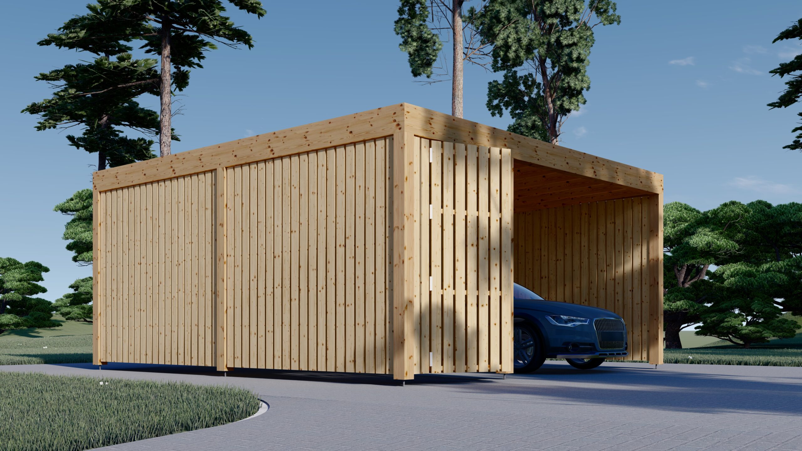 Bei all unseren Carports mit Seitenwänden ist eine bestimmte Anzahl an holzverkleideten Seitenpaneelen bereits im Preis inbegriffen (entsprechend der Darstellung auf dem Produktbild). Je nach Modell können 1 bis 4 zusätzliche Wandpaneele ausgewählt werden.