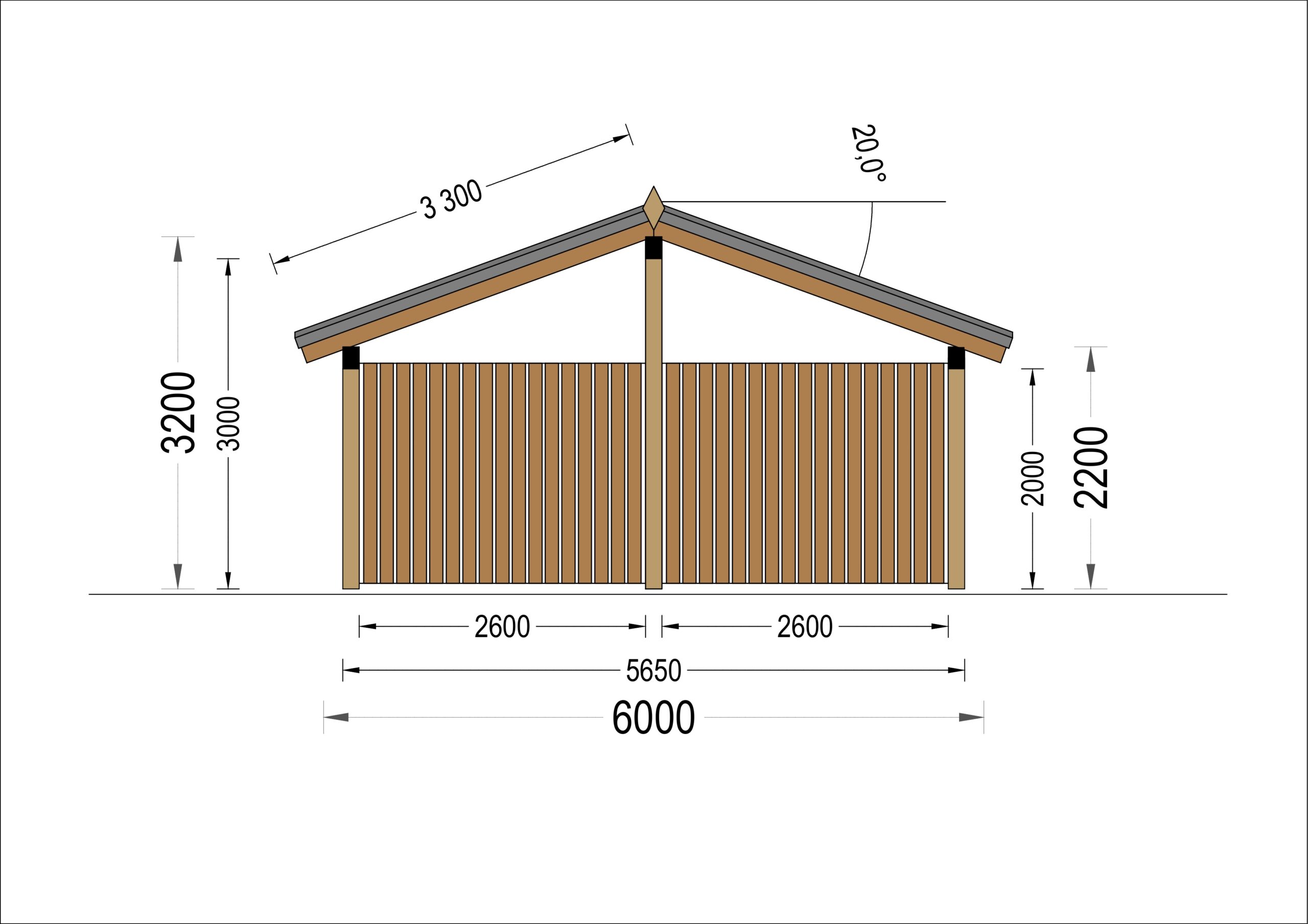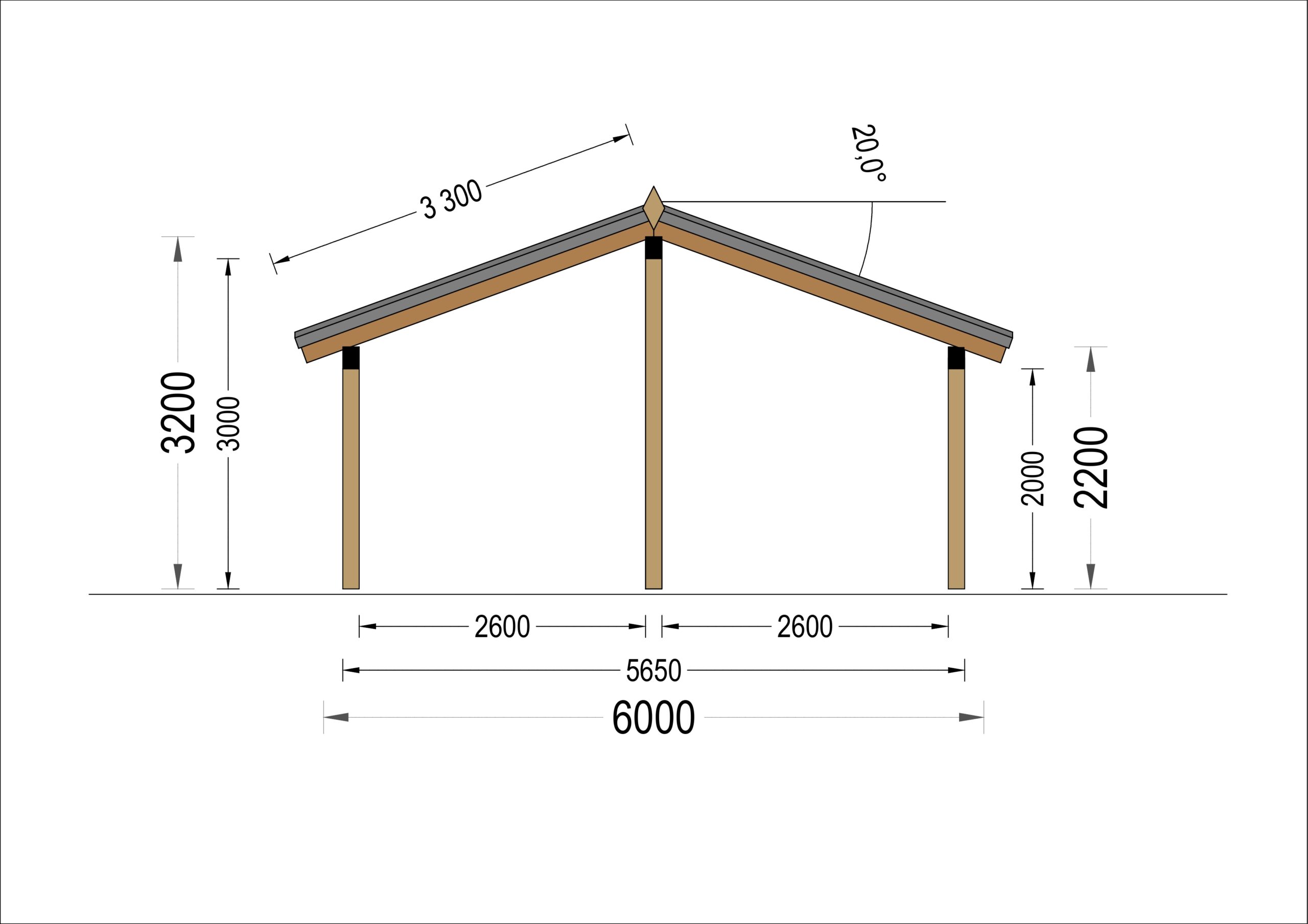 Doppelcarport SANDRA+ mit Seitenwand · 6 × 6 m
