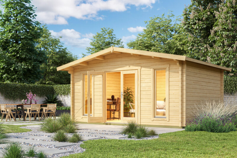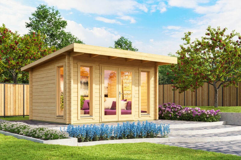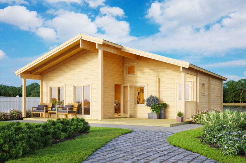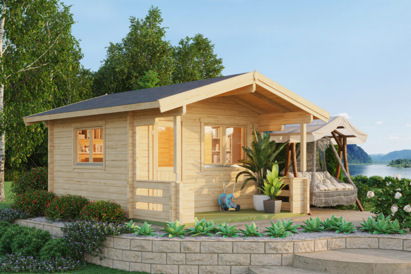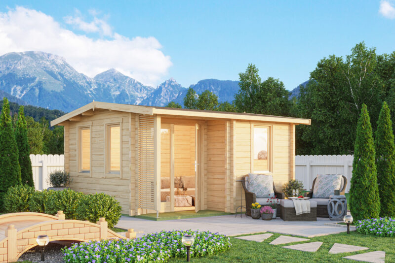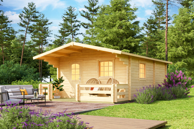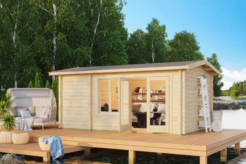 Wer den Blockbohlenstil liebt, ist bei Zanzibar genau richtig: Der moderne Klassiker aus robuster nordischer Fichte lädt auf 31,5 m2 Innenfläche zum gemütlichen Verweilen ein. Durch die breite Doppeltür wird der geräumige Wohnraum noch einmal nach draußen vergrößert. Den Duft von frischem Sommerregen kann man unter dem extra langen Vordach genießen.
