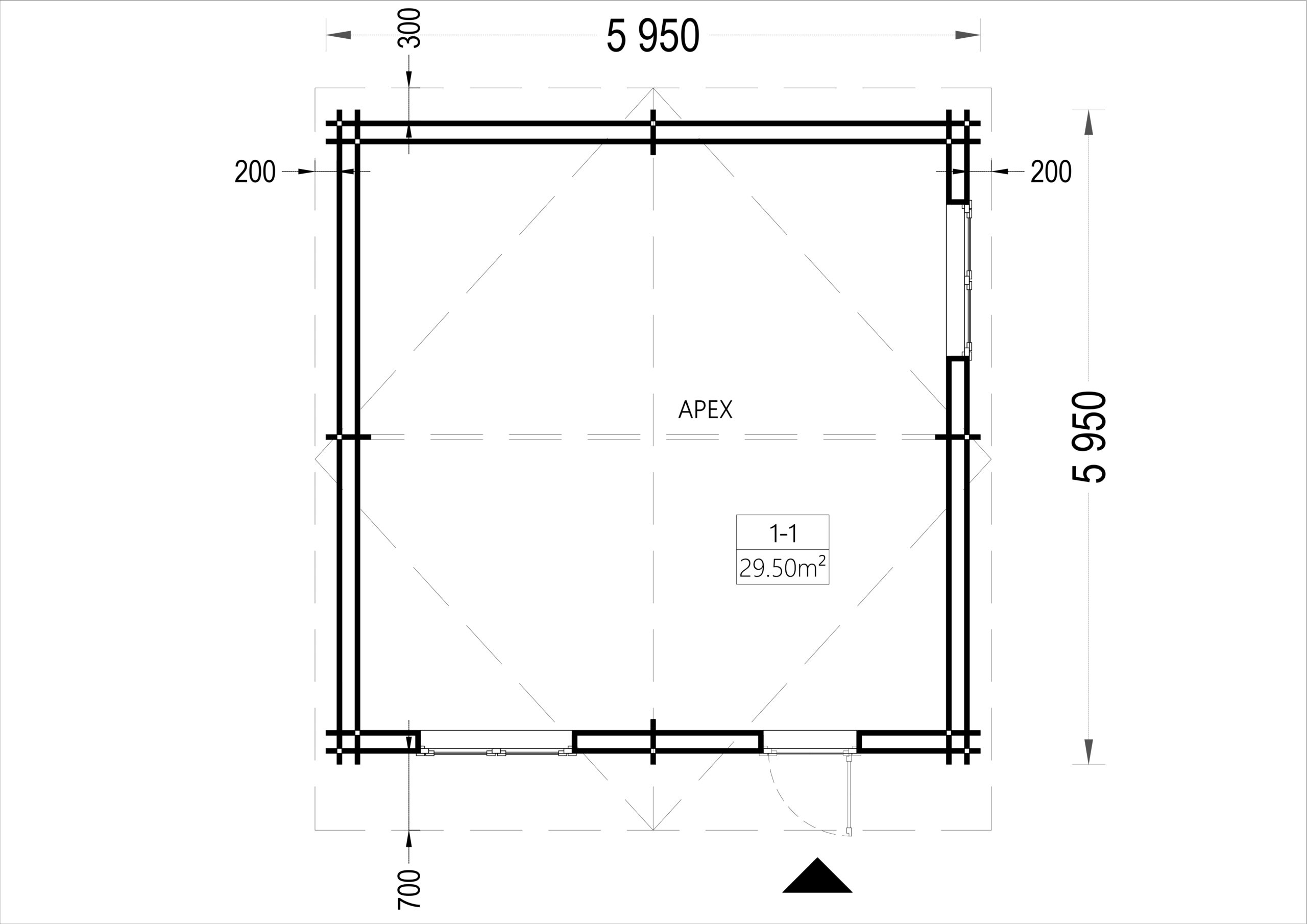 Gartenhaus Donau (44+44mm) 6x6m, 36m² Isoliert