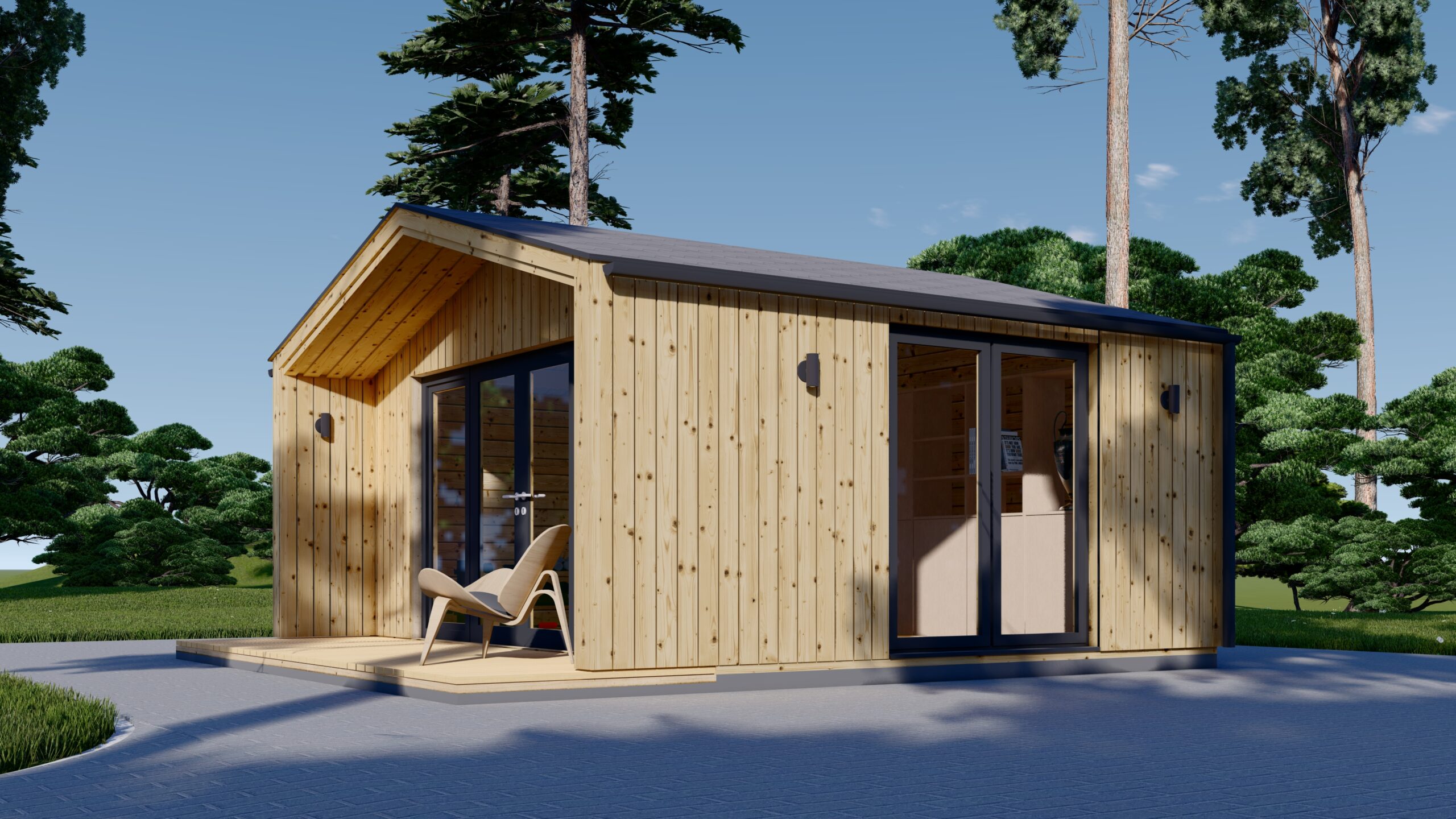 Das isolierte Gartenhaus ELSA vereint moderne Architektur, hochwertige Materialien und ein einladendes Raumgefühl.