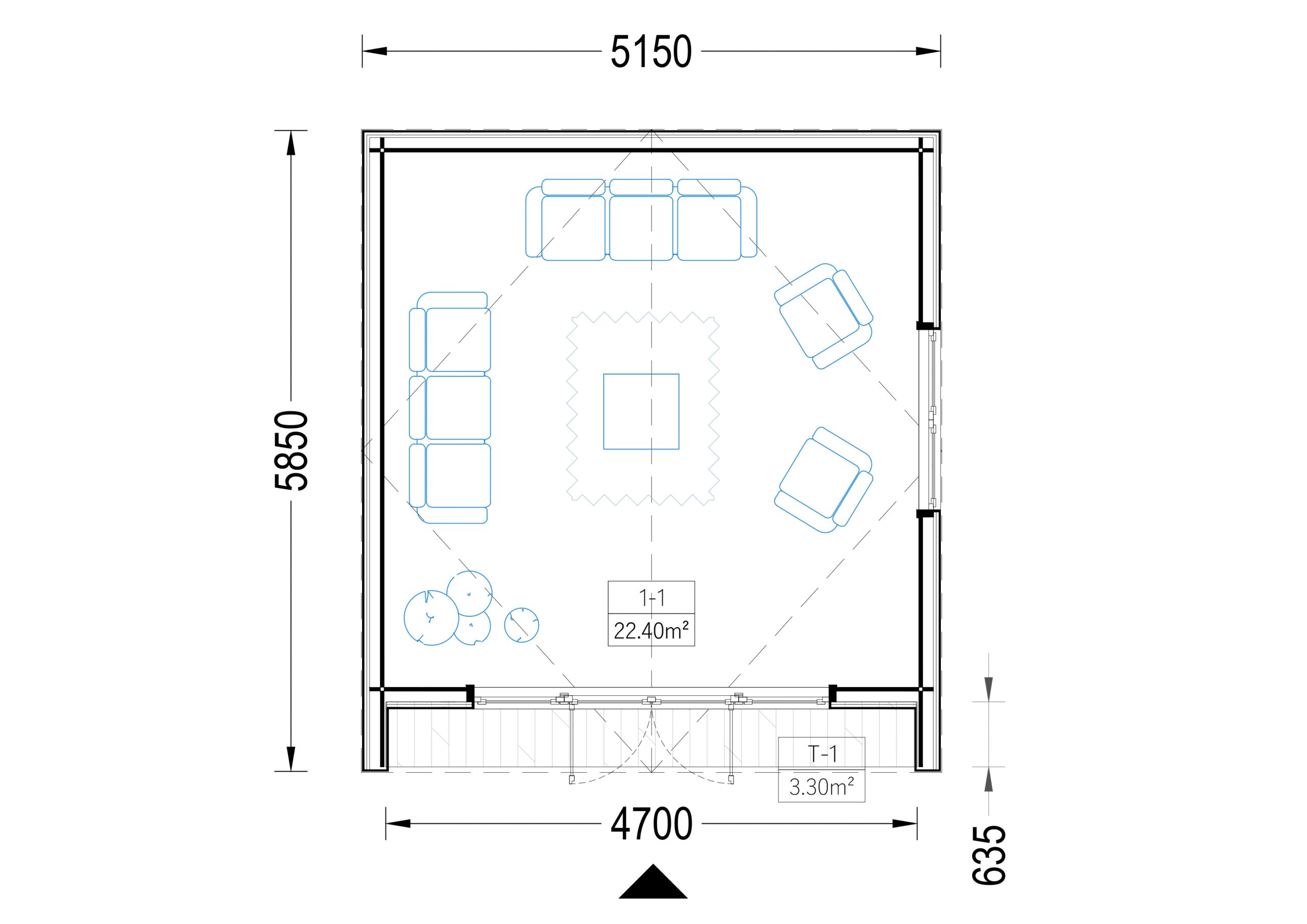 Gartenhaus ELSA (34 mm + Holzverschalung), 5×5 m, 25 m² – Isoliert