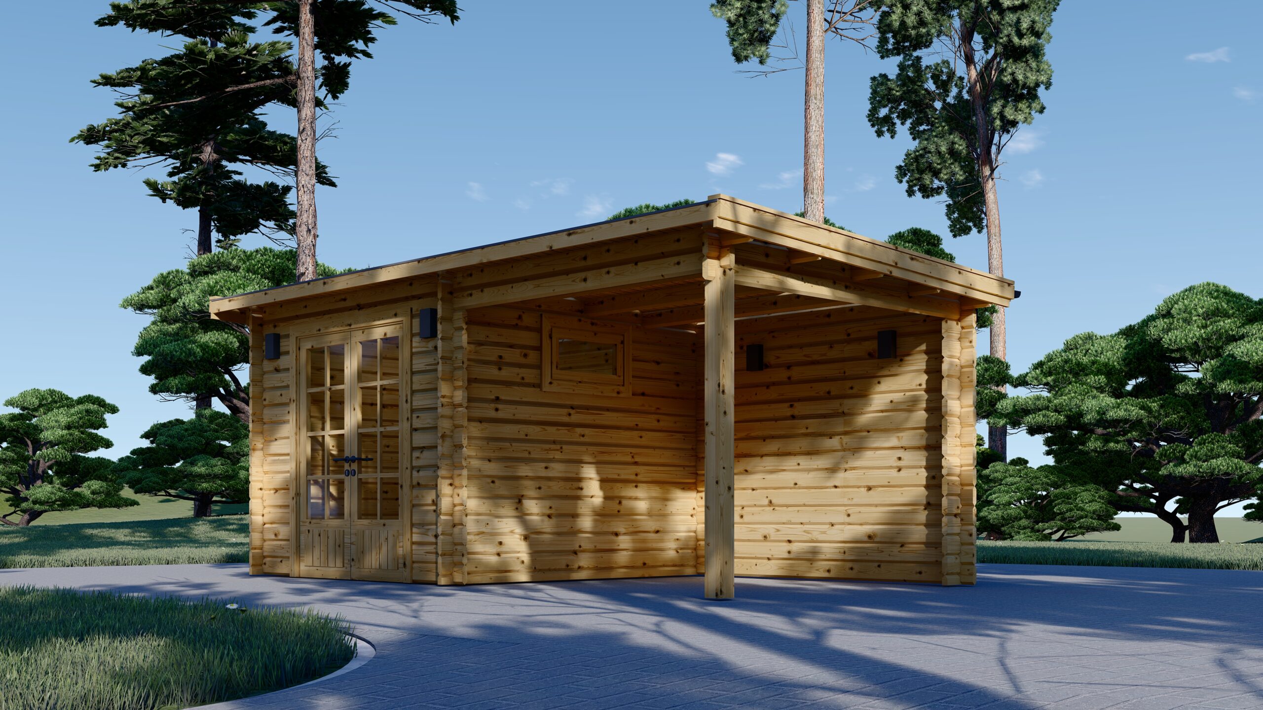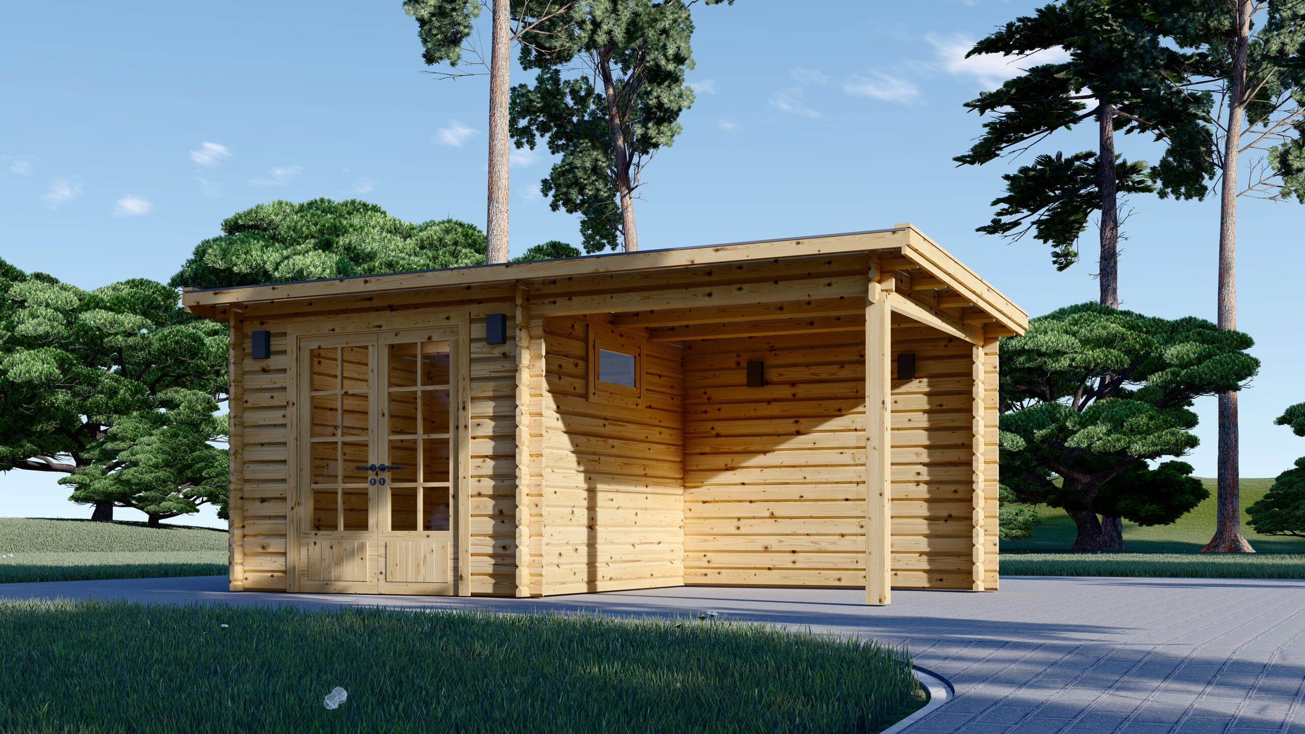 Die asymmetrische Bauweise verleiht dem Gartenhaus einen modernen Charakter und hebt es optisch von klassischen Modellen ab.