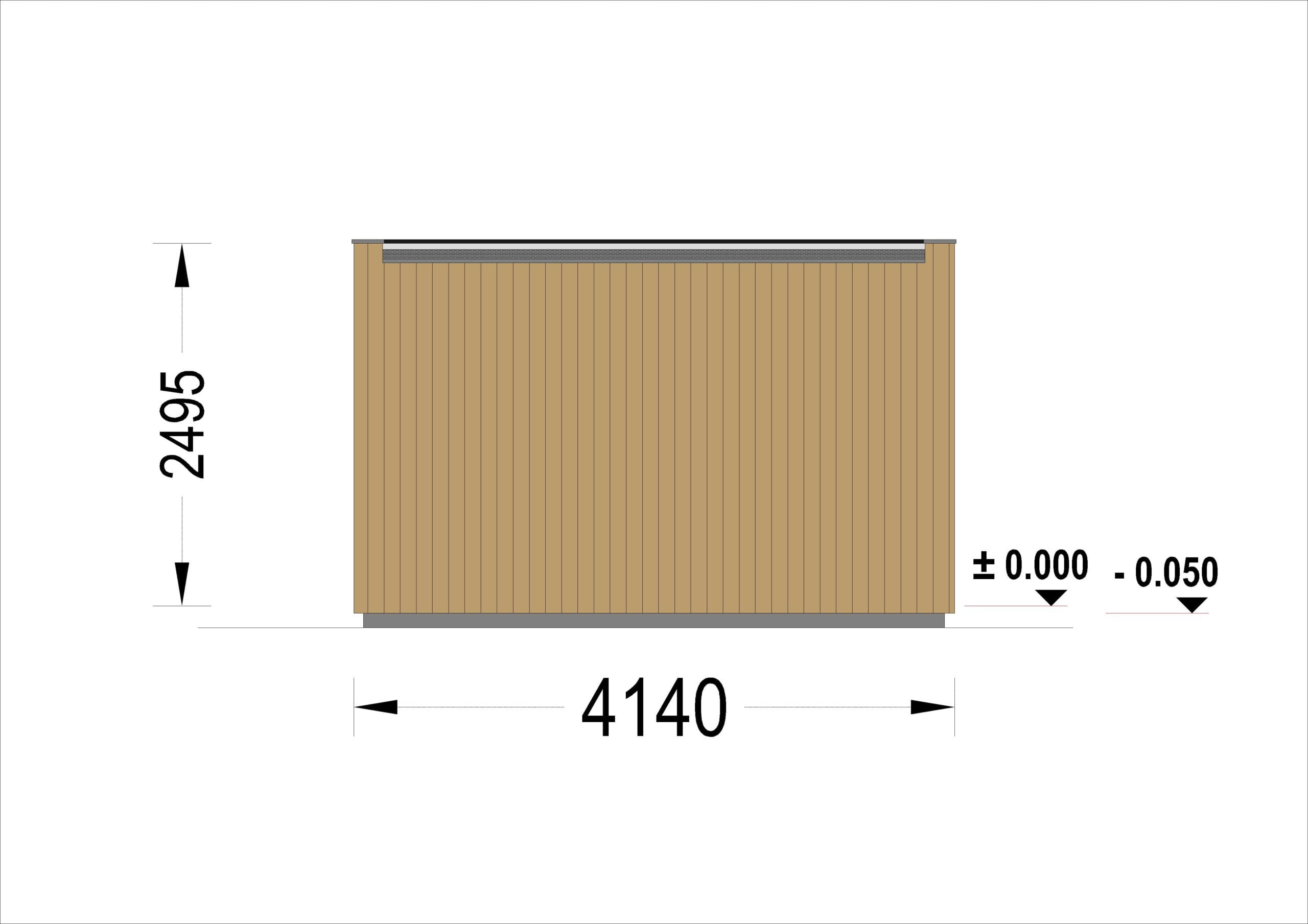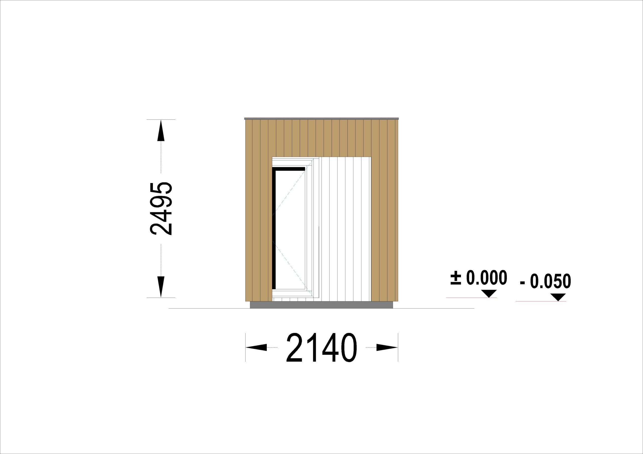 Gartensauna DANIEL (34 mm + Holzverschalung), 2,6 x 2,1 m, 3,8 m² mit Terrasse 3 m²