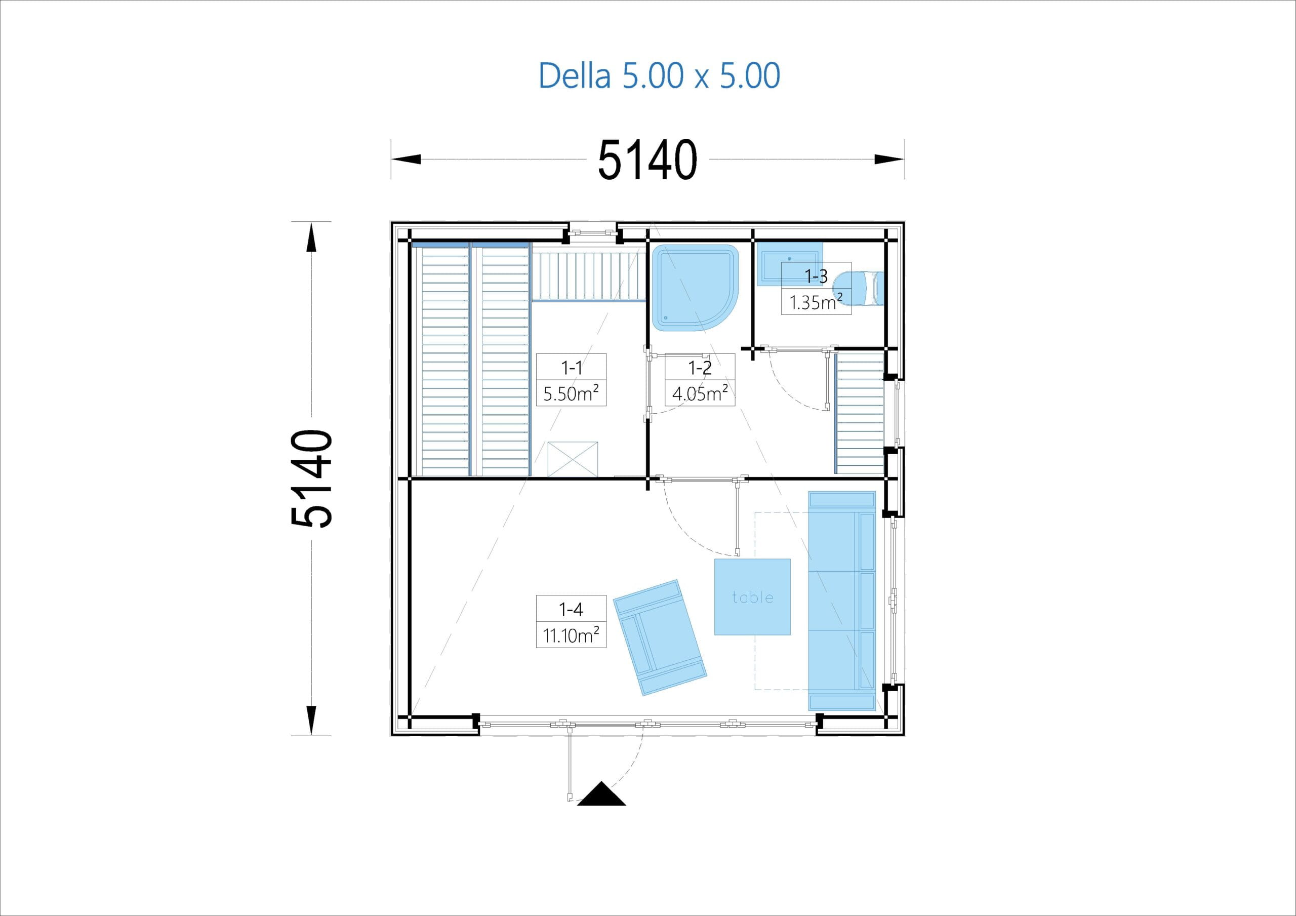 Gartensauna mit Vorraum DANIEL – 22 m² (5,1 x 5,1 m)