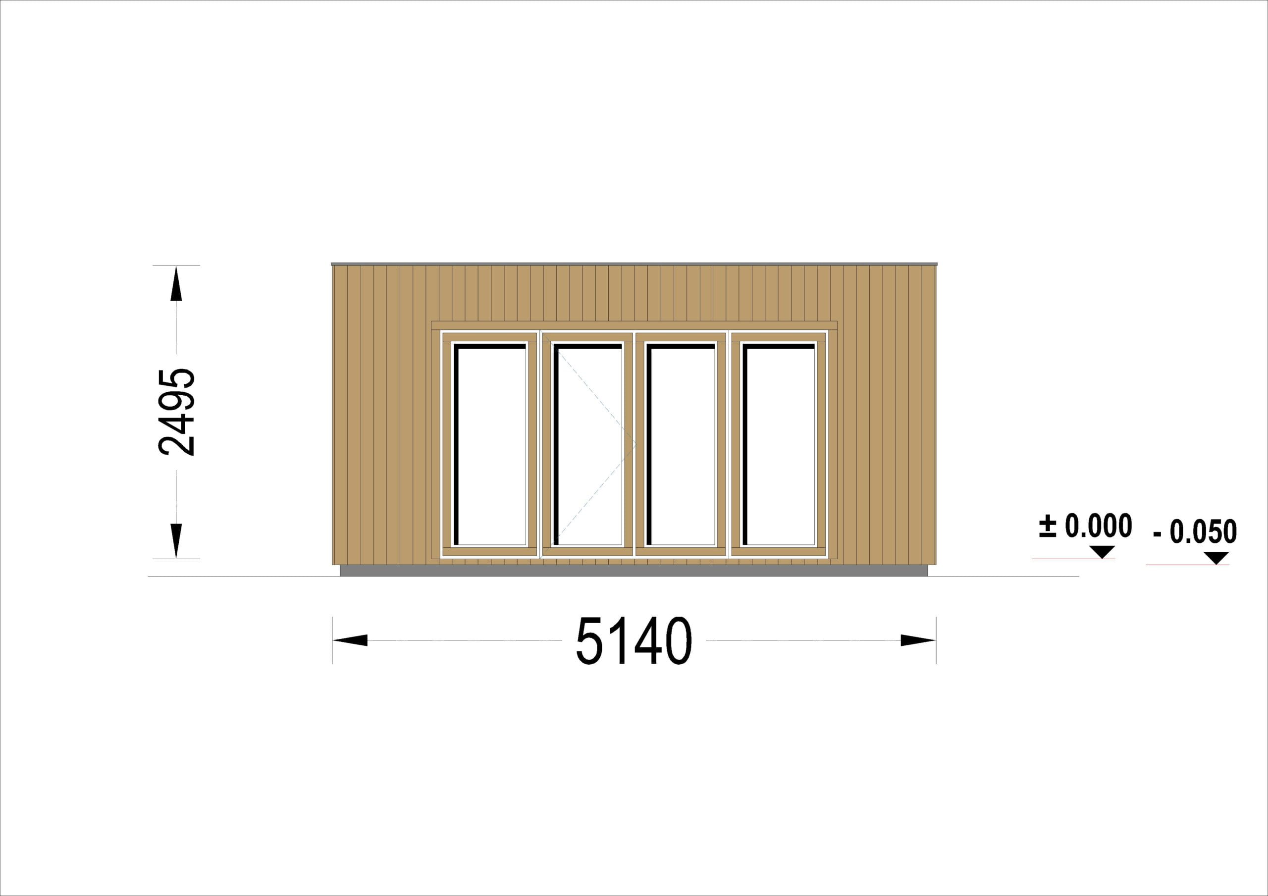 Gartensauna mit Vorraum DANIEL (34 mm + Holzverschalung), 5,1 x 5,1 m, 22 m²
