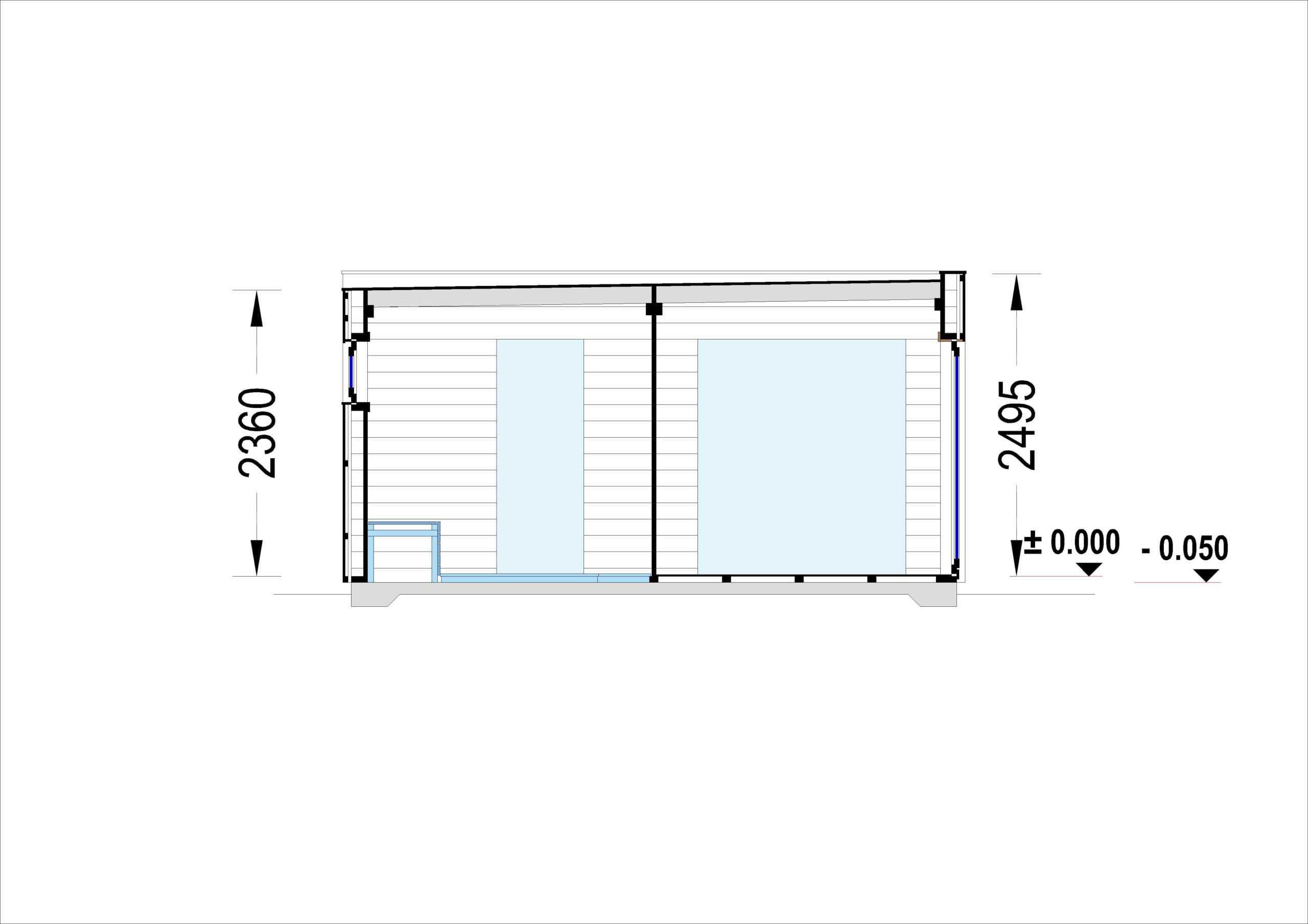 Wände mit vertikaler Holzverkleidung | Doppelverglaste Fenster und Außentür | Bodendielen | Bodenrost | Dachbretter | Saunabänke | Imprägnierte Unterkonstruktion | Lieferung