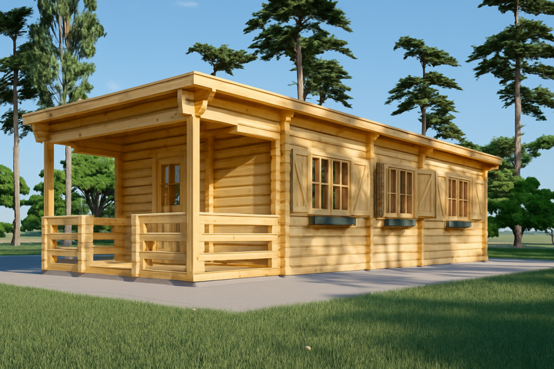 Blockbohlenhaus HANNES (44+44 mm) · 42 m² + 10 m² Terrasse · Extra Isoliert