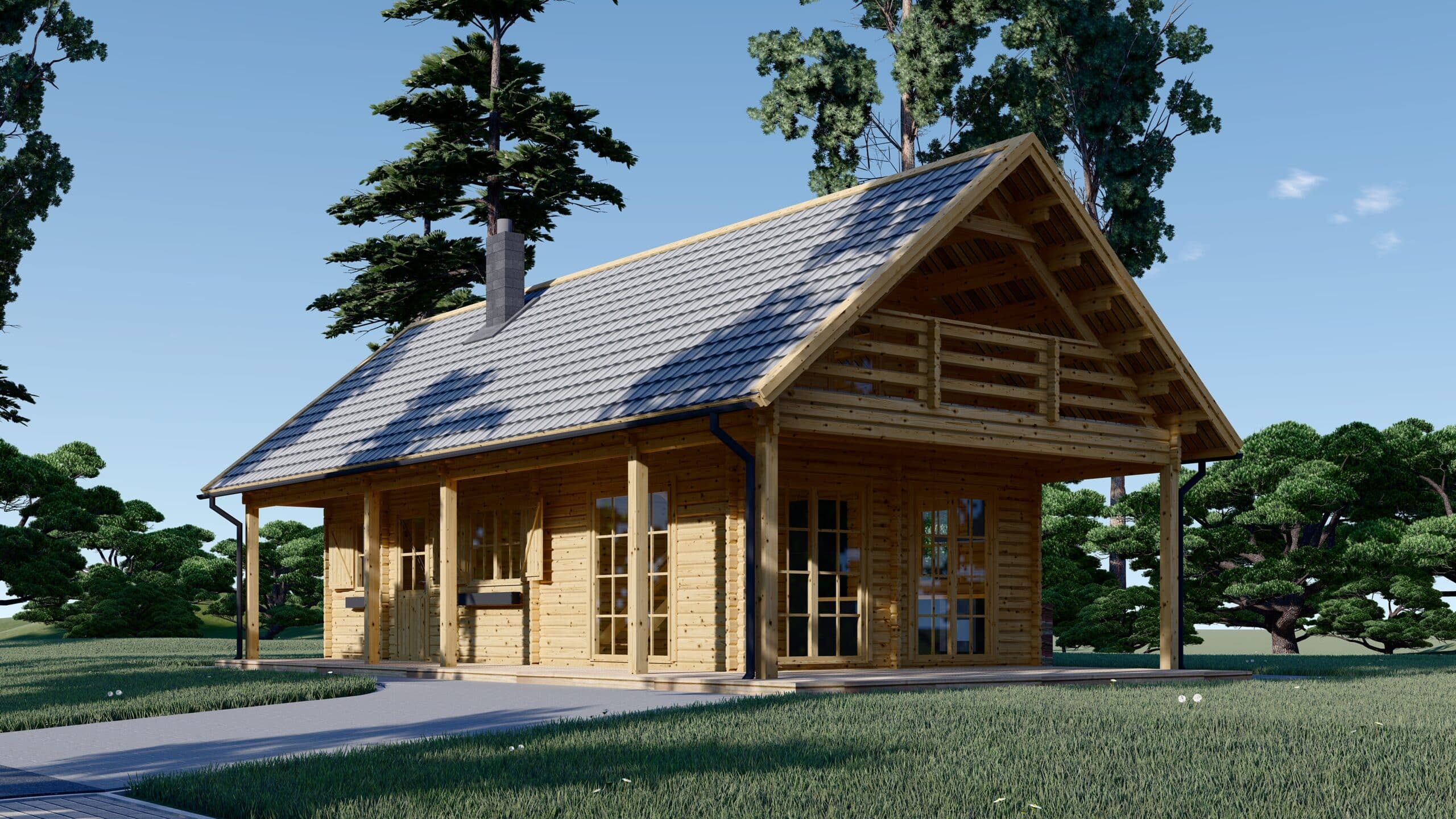 Blockbohlenhaus GOSAU (66 mm), 6×15 m, 90 m²