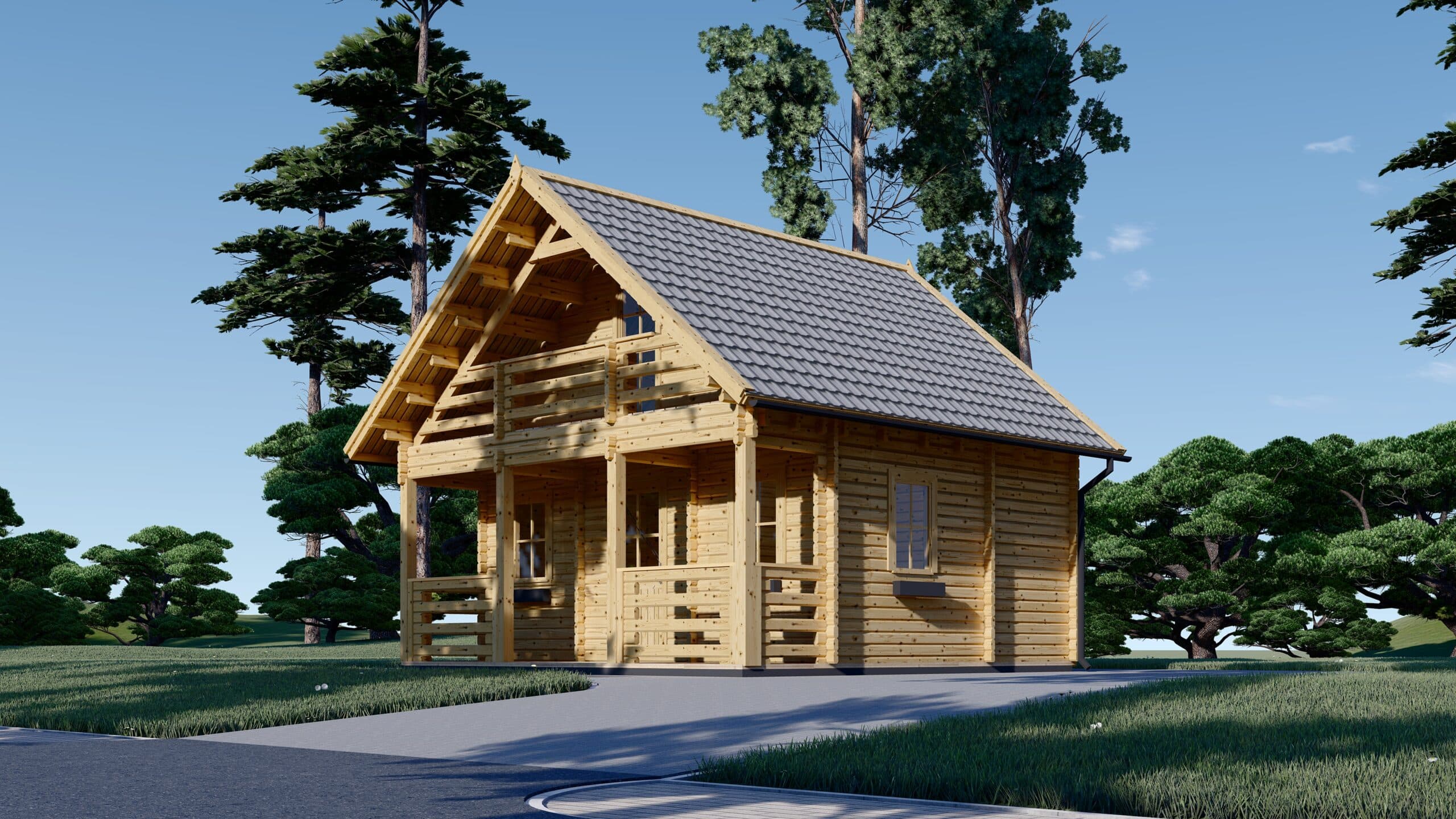 Premium Blockbohlenhaus Innsbruck (44 mm) 36 m² mit 14 m² Schlafboden