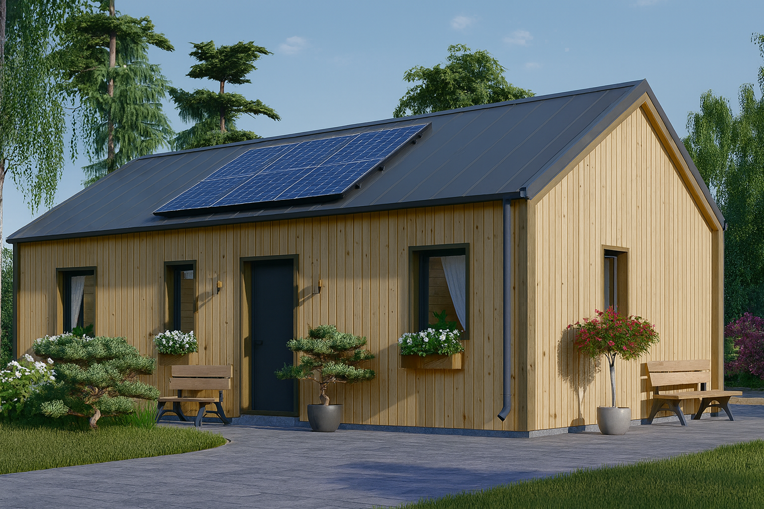 Wohnhaus NIKI (Isoliert, 66 mm + Holzverschalung) – 66 m²