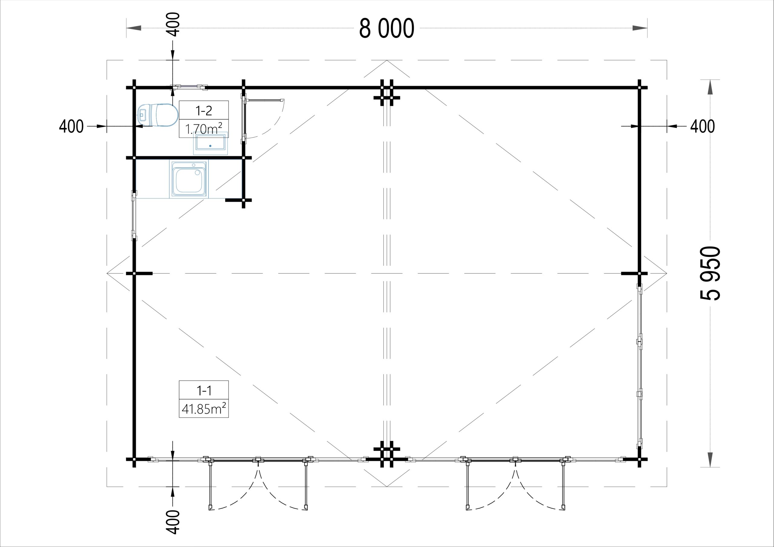 Premium Blockbohlenhaus MARTIN (44 / 66 mm) – 48 m²