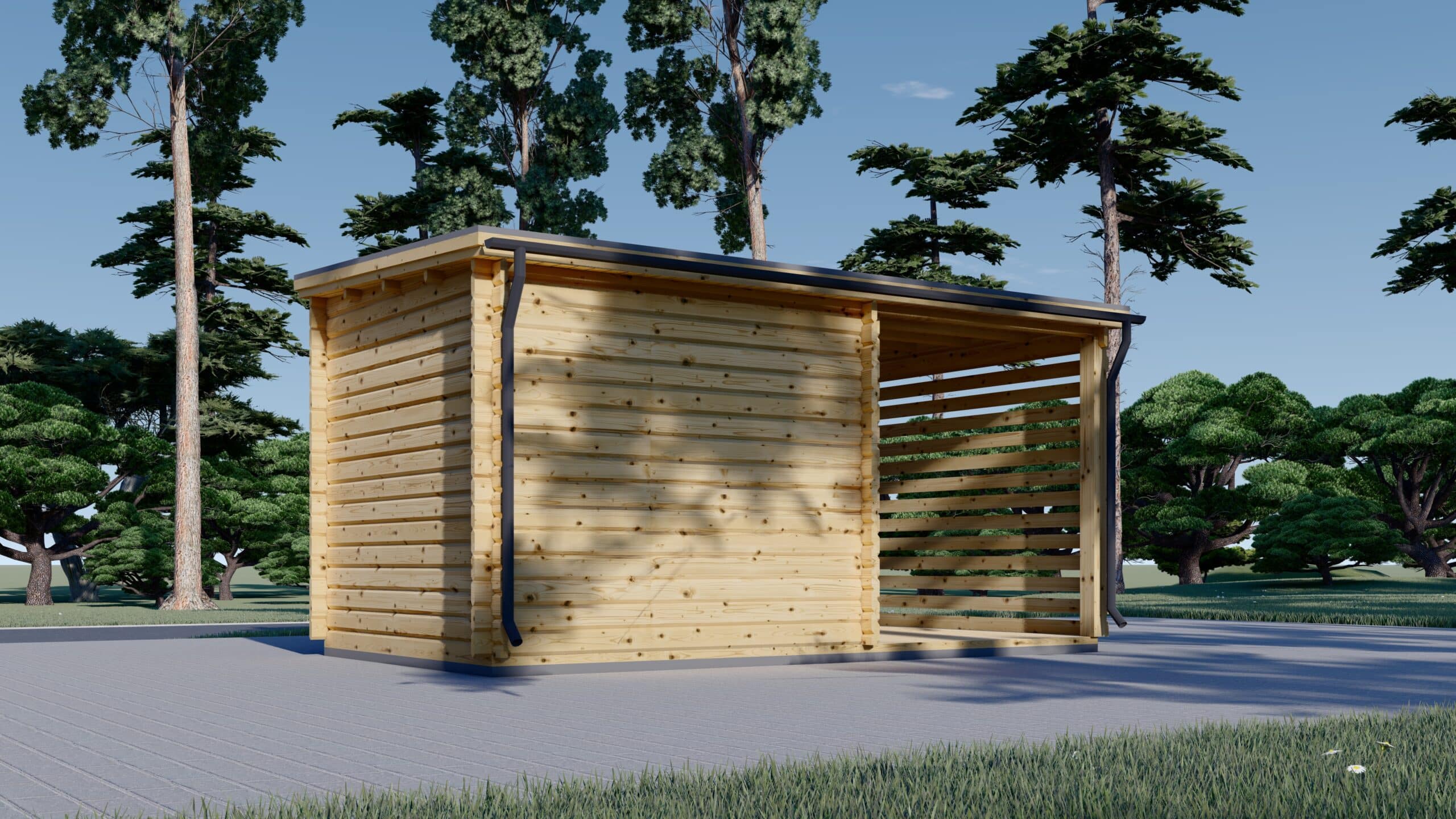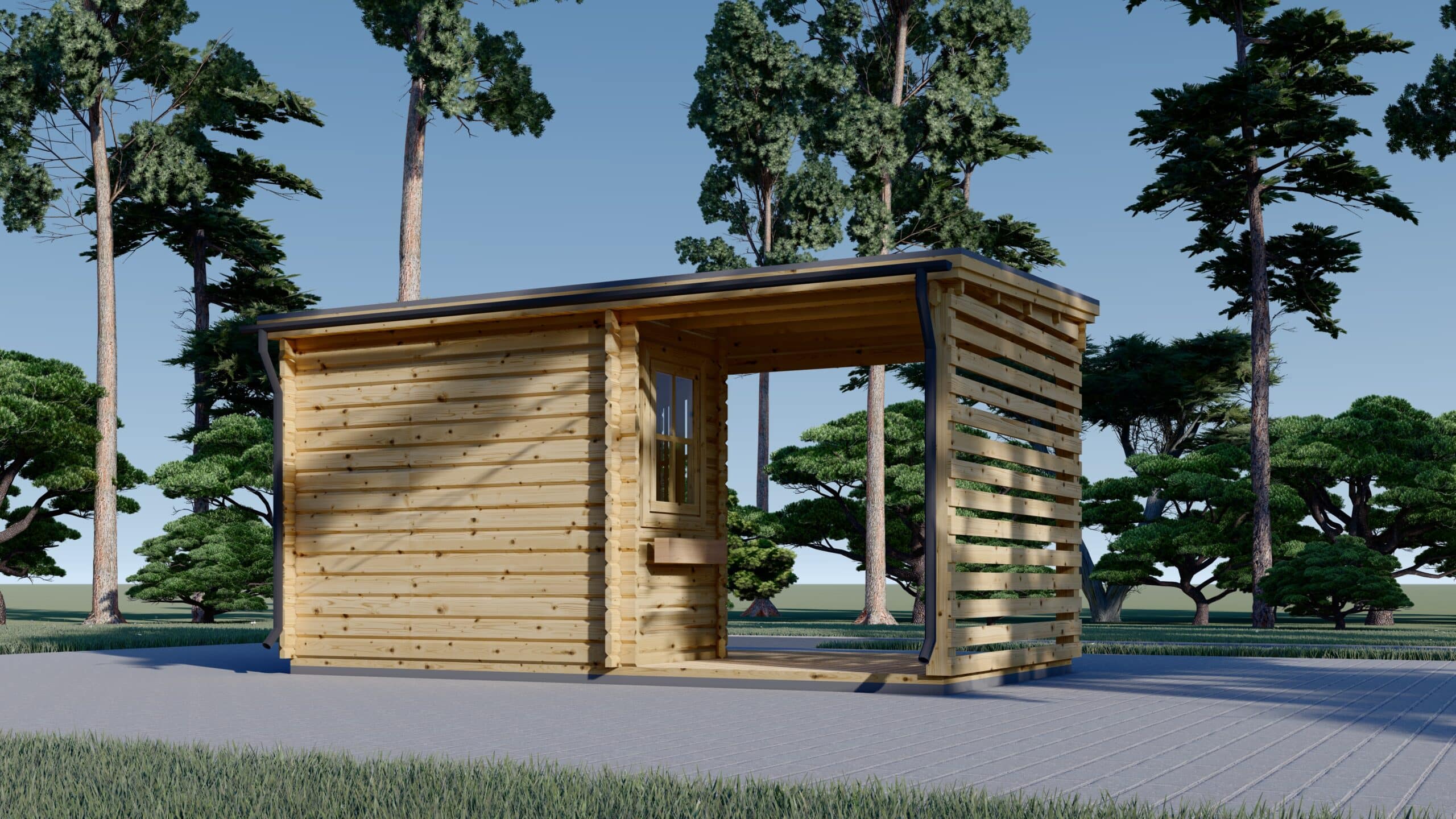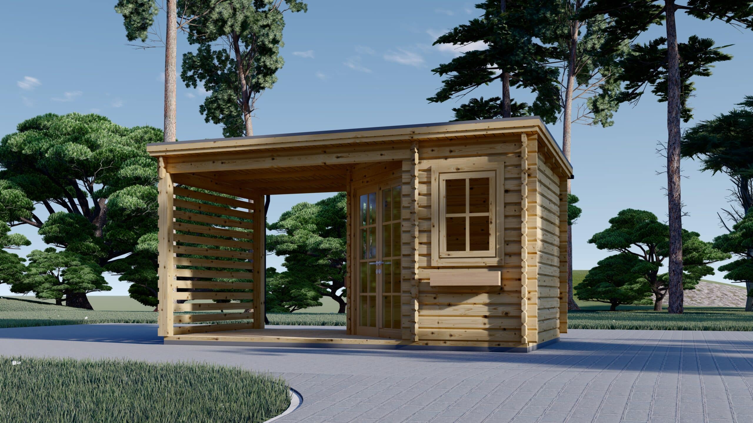 Mit 9 m² Innenraum und zusätzlichen 6,5 m² überdachter Terrasse bietet dieses Modell die perfekte Balance zwischen Funktionalität und Wohlfühlatmosphäre – ideal als Sommerhaus, Gartenlounge oder Stauraumlösung mit Stil.