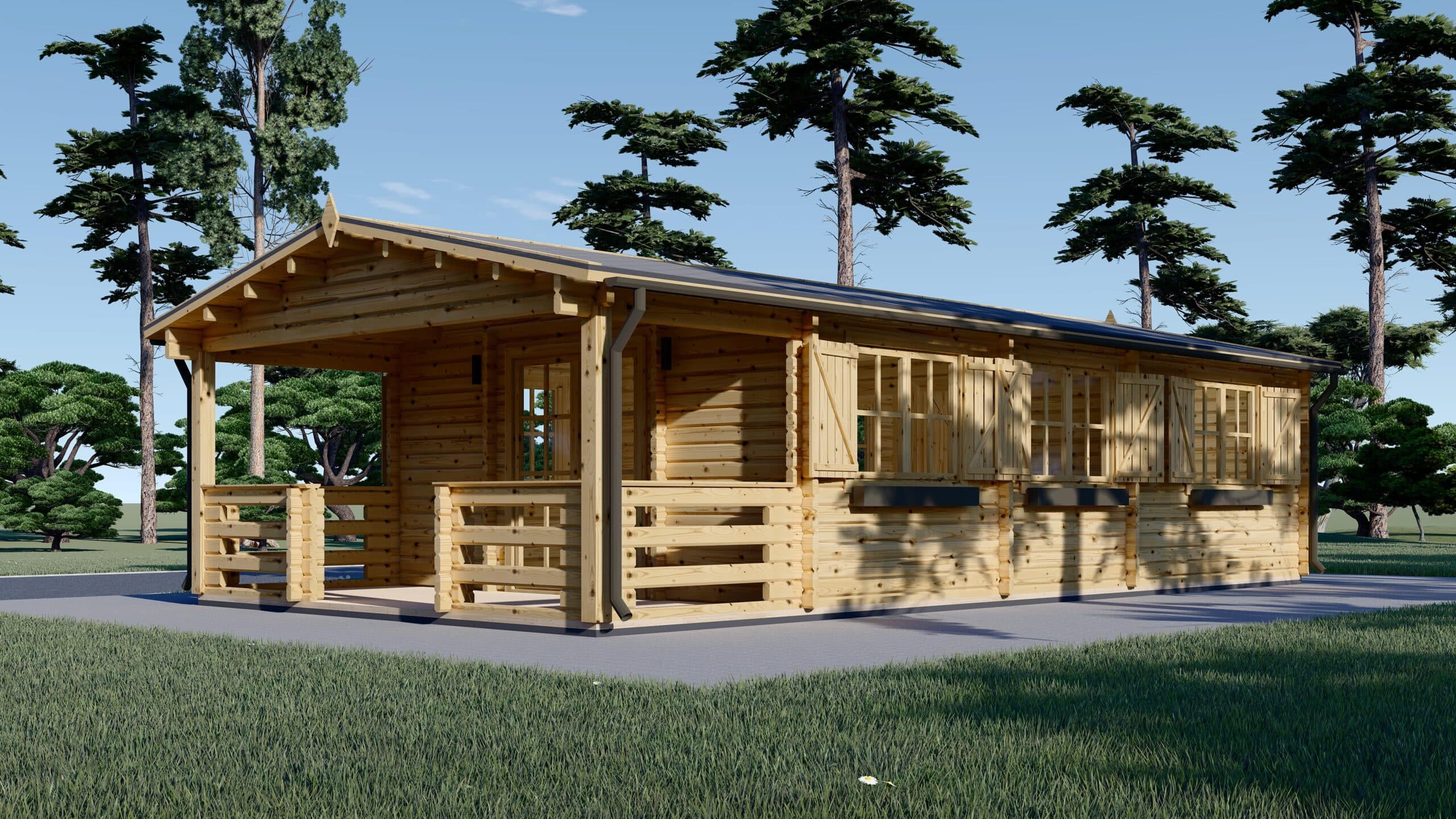 Blockbohlenhaus BOZEN (44 + 44mm), 15x6m, 90m² Isoliert