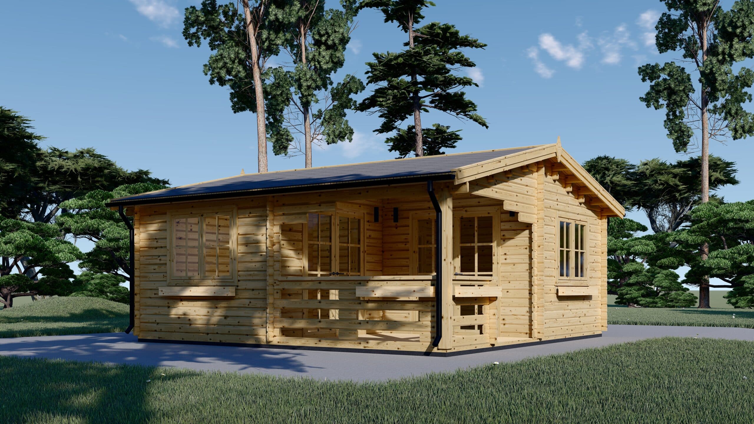 Blockbohlenhaus mit Schlafboden DORNBIRN (44 mm), 20 m² + 16 m² mit Pultdach