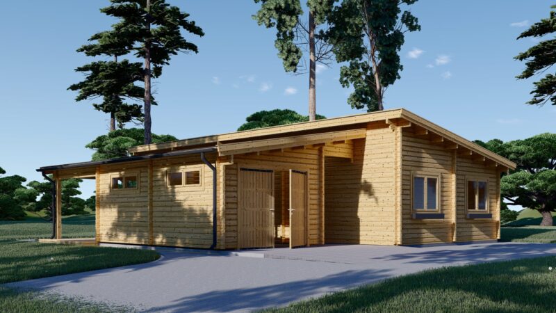 Blockbohlenhaus SEEFELD (44+44 mm) · 105 m² · Extra Isoliert · mit Pultdach