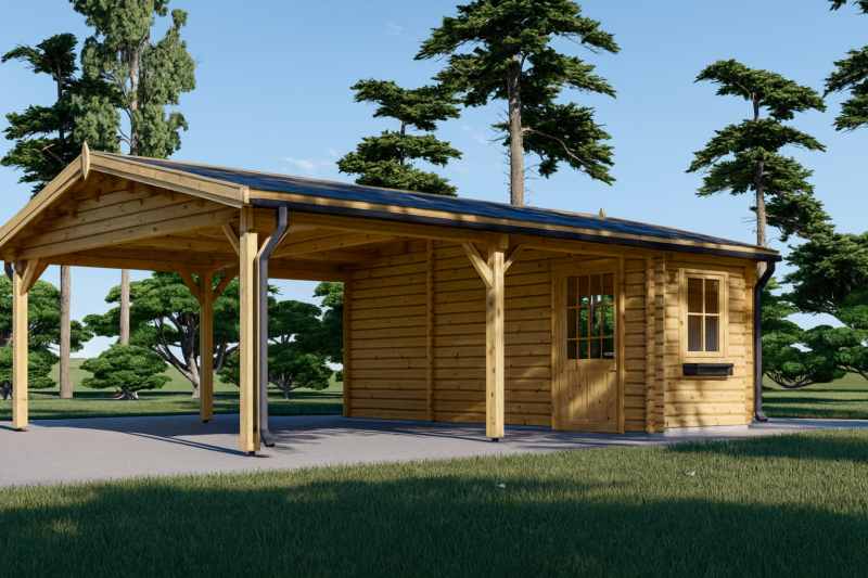 Carport aus Holz für 2 Autos mit Schuppen (44 mm), 5,5×6 m