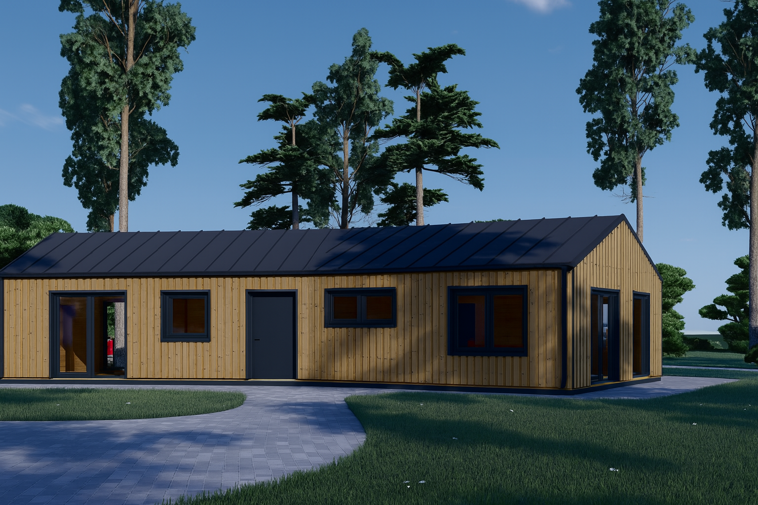 Holzwohnhaus Florenz Isoliert, 66 mm + Holzverschalung, 84 m²